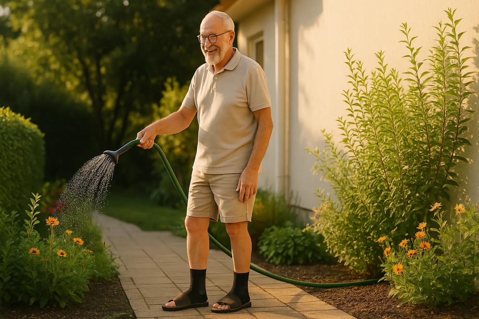 Am dritten Tag besuchte ich ihn – und fand ihn draußen im Garten, bei der Arbeit an seinen Beeten. Ich war ehrlich gesagt überrascht. Und er ebenfalls. Die Socken wollte er nicht mehr hergeben, also blieb mir nichts anderes übrig, als selbst ein neues Paar zu bestellen.